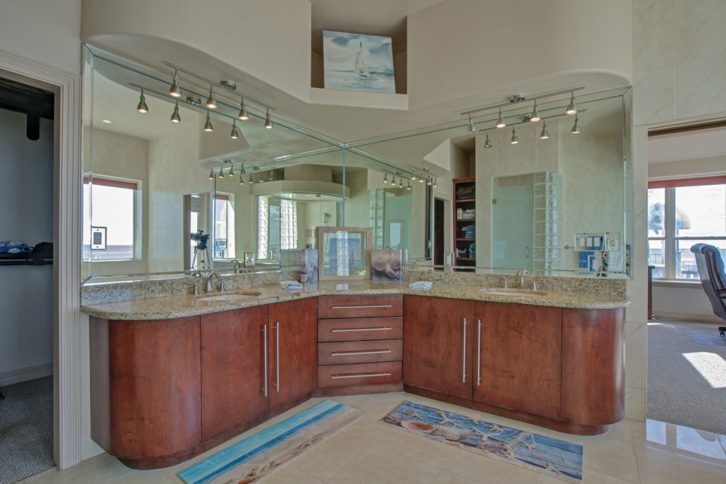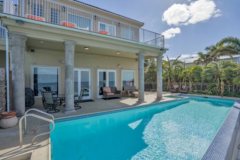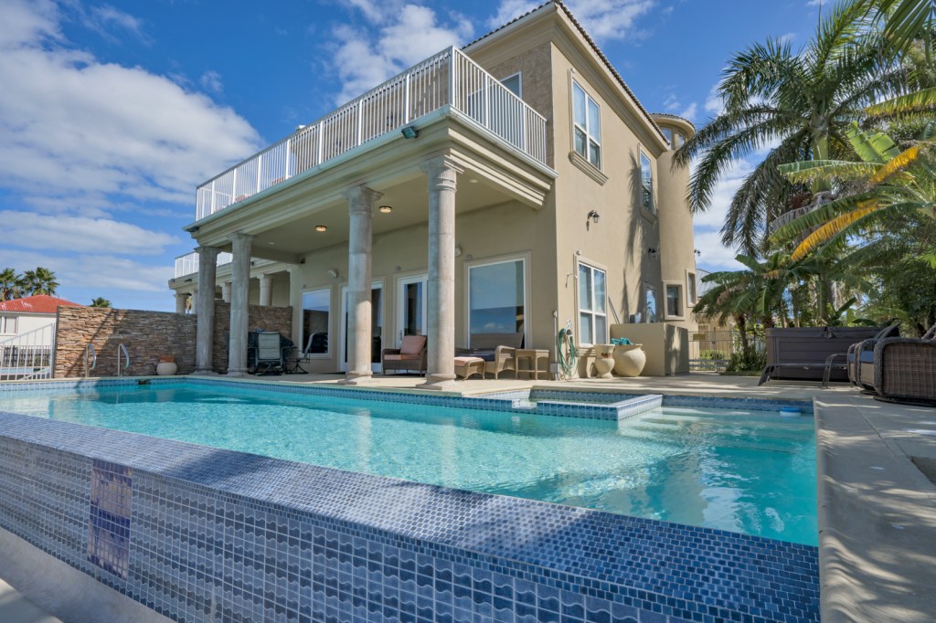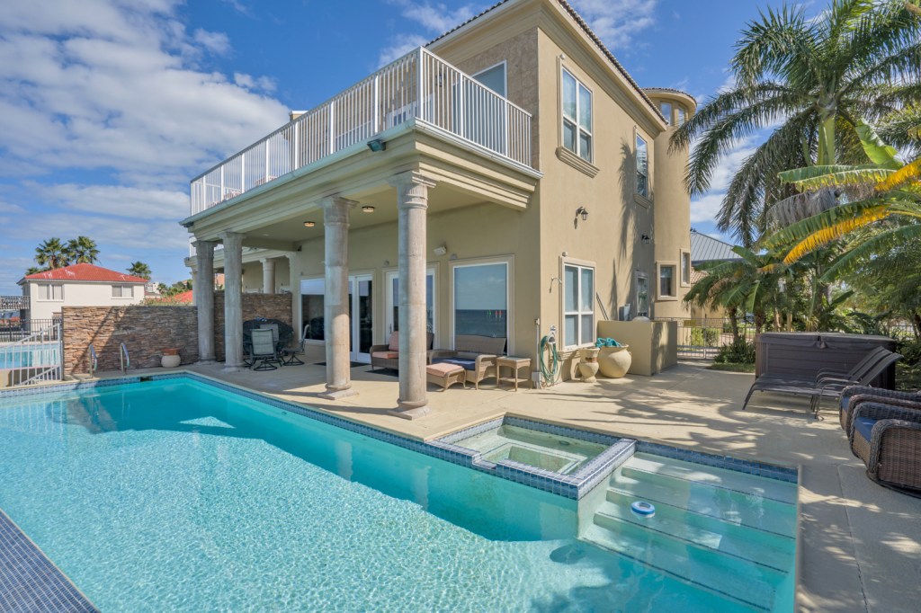3 Bedroom, 3.5 bath Bayfront home with lush tropical landscaping and waterfront infinity pool with spa. Enjoy views of the Bay from the first and second floor living areas, kitchen, and dining area. Bayfront master bedroom with large closet and balcony. Master bathroom has shower and tub overlooking the waterfront and double vanity sinks. Enjoy SpaceX Launches from your extended fishing pier.