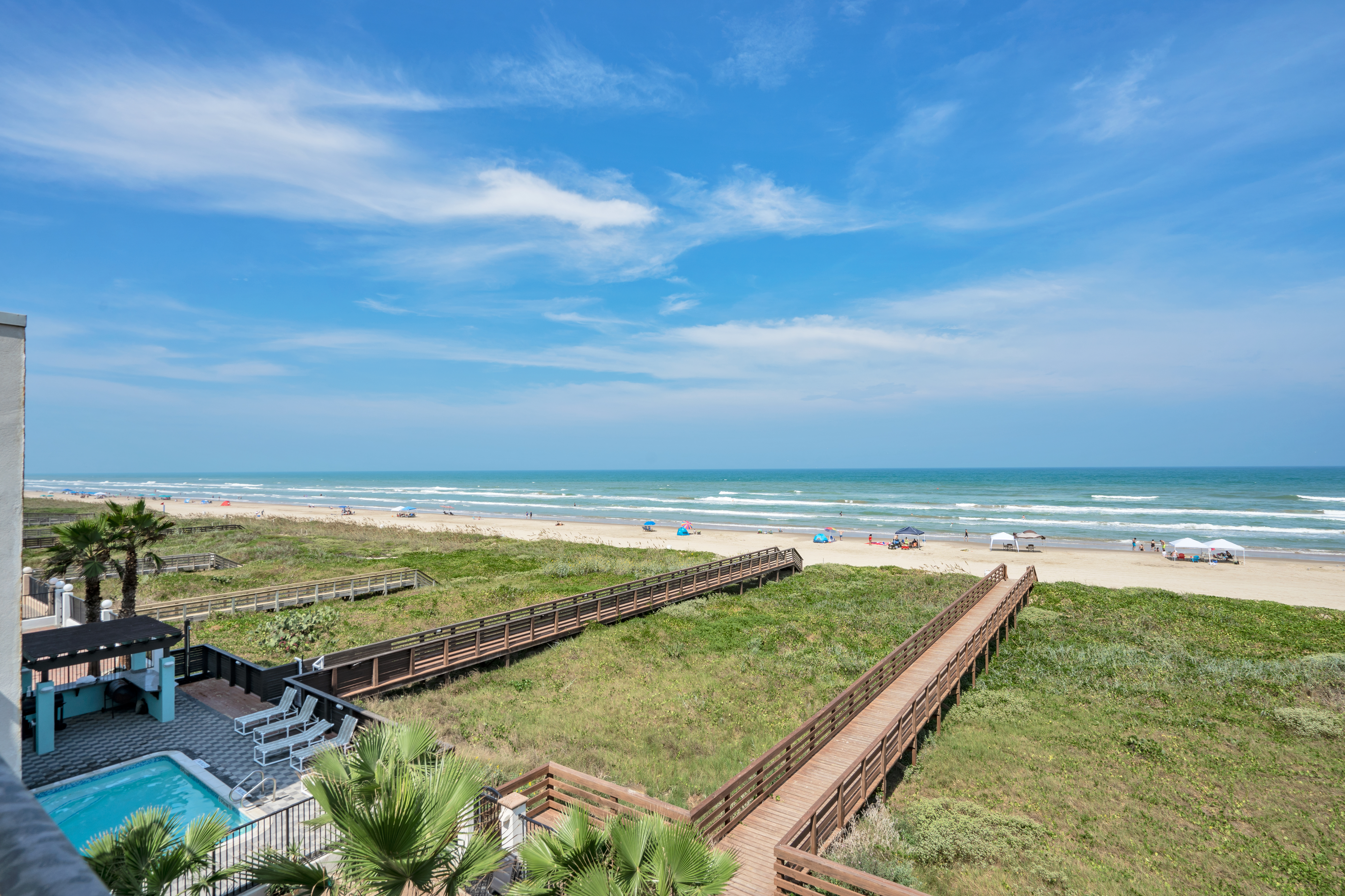 Unique and beautiful BEACH-front townhome with pool! Well thought-out design and very functional. Fully furnished and ready to be your new residence or rental investment property. First floor has a large bedroom/bath combo with access to kitchen, half bath, and living quarters which are situated for a perfect view of the beach and lovely pool area!Second floor is comprised of the spacious master bedroom/bath with two other bedrooms/baths on the same level. A living area space is located with a view of the Gulf of Mexico. The third level, which can be locked off and used when needed, consists of two bedrooms, two baths, and a living room, as well. The property has been remodeled in recent years and offers a complete package to call your own! List Price: $1,195,000.00 Listing Agent: Karen Moore, (956) 639-9494