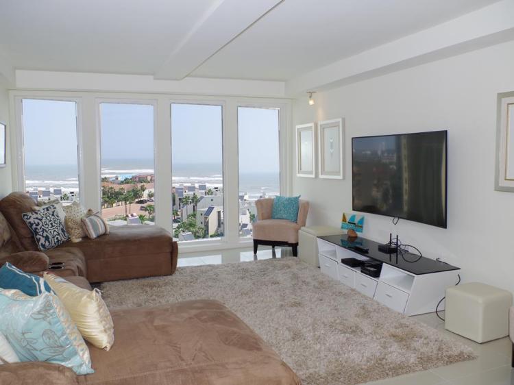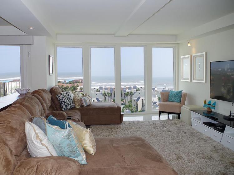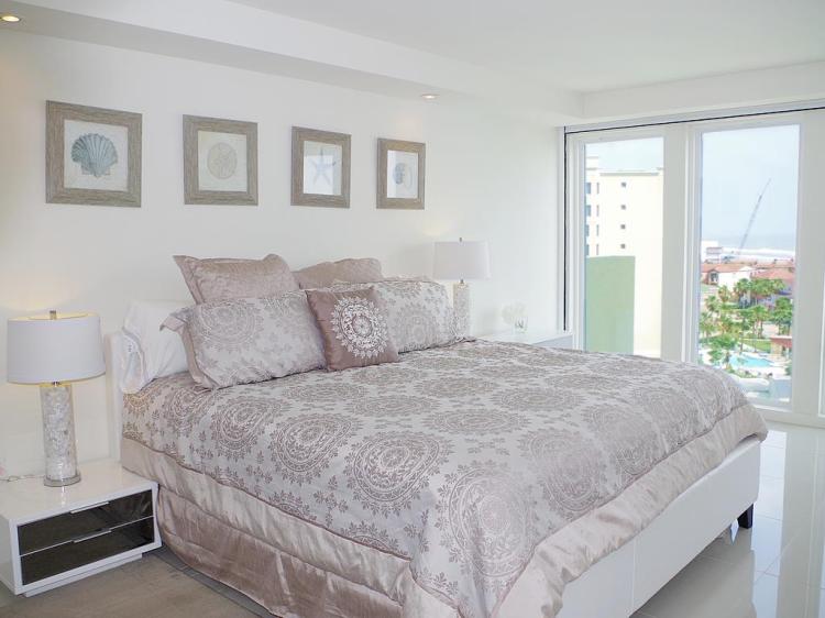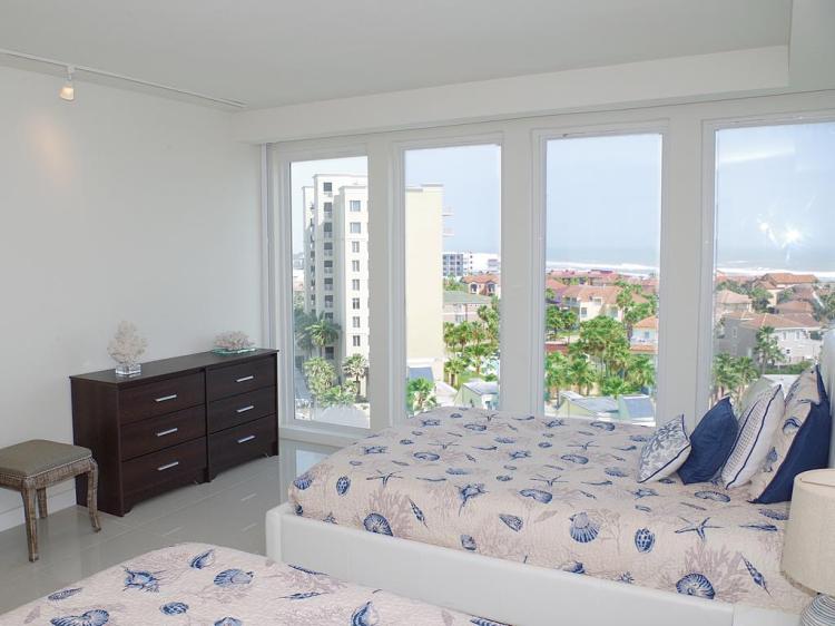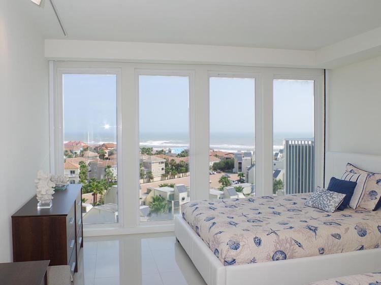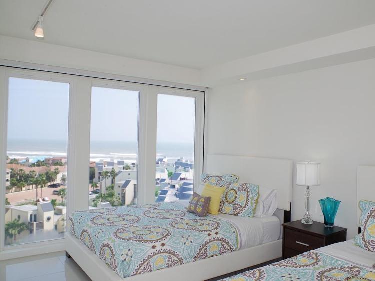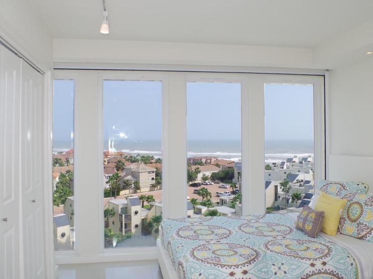 Live the luxury beach life at Solare! Classy and modern, this 9th floor 4-bedroom 4-bath condo has ocean views from every room. Open concept living & dining overlook the ocean. The balcony provides a stunning view of the Gulf and the Laguna Madre Bay. The kitchen has granite counters, stainless steel appliances, and lots of cabinet space. Each bedroom has an ensuite bath and ample closet space. There are two bedrooms on one side, and two on the other. 2,285sqft of living space, plenty of room for entertaining family and friends. Convenient in-unit washer/dryer. Solare amenities include 2 pools, 24-hour security, gated entry, lush landscaping, BBQ area, tennis courts, playground, gym, beachfront lounge area, and plenty of parking.